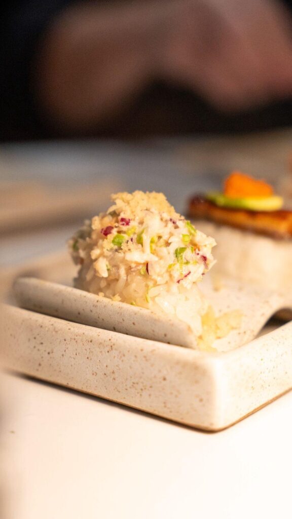O sushi, no Gurumê, é tratado como arte viva. O corte preciso, o brilho do peixe, o arroz moldado à mão — tudo é coreografado com respeito e propósito. Daiti resume essa filosofia em uma palavra: respeito.