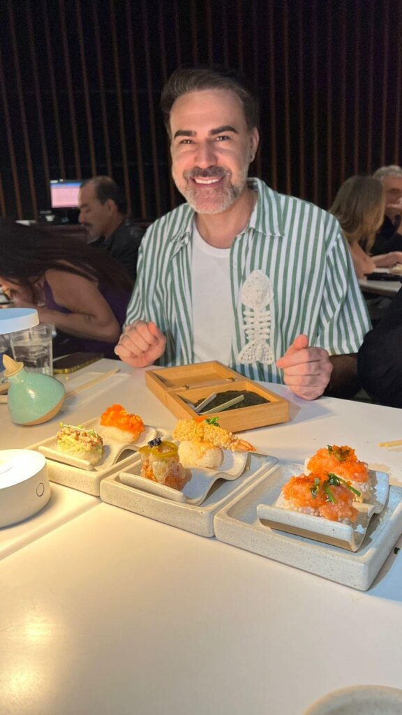 Durante a noite, o chef apresentou o Hand Roll de Bluefin — disponível exclusivamente na unidade de Brasília, entre 30 de outubro e 5 de novembro, por R$ 67. Elaborado com Bluefin Akami e Bluefin Toro, o prato traduz o diálogo entre tradição e vanguarda: uma releitura do temaki clássico japonês, feita com o atum mais nobre e consumido no Japão.