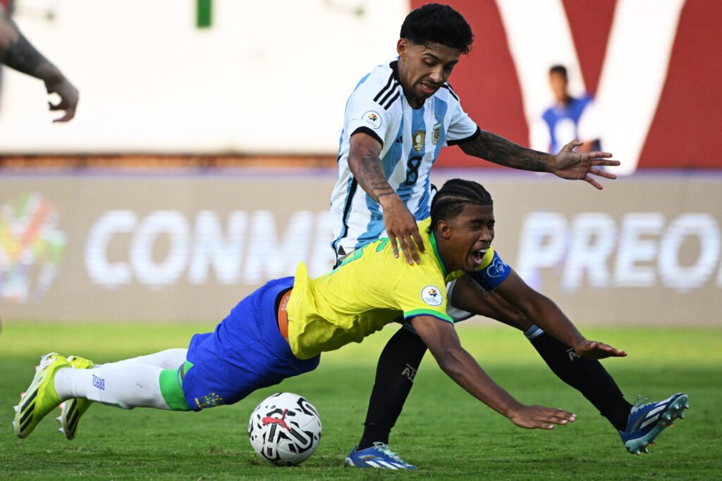 A aposta dos dois gigantes sul-americanos tinha um roteiro claro neste duelo de vida ou morte: a Argentina assumiu a posse da bola e o Brasil esperou para contra-atacar, buscando Mauricio e Guilherme Biro pelas pontas e Endrick mais à frente.