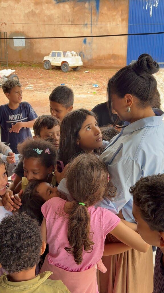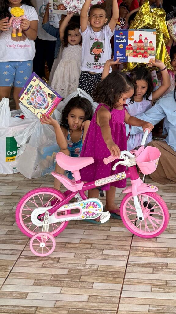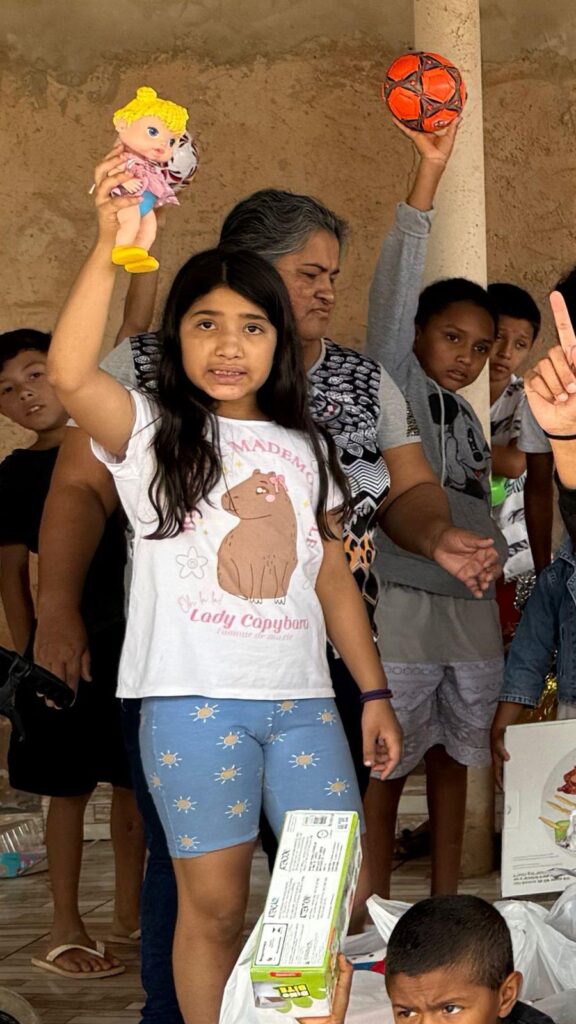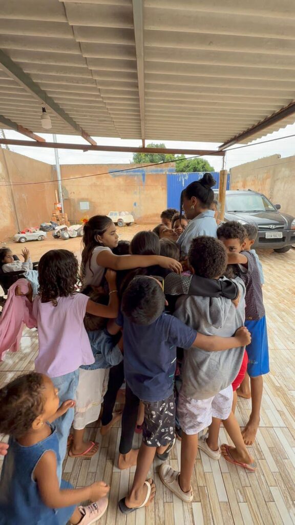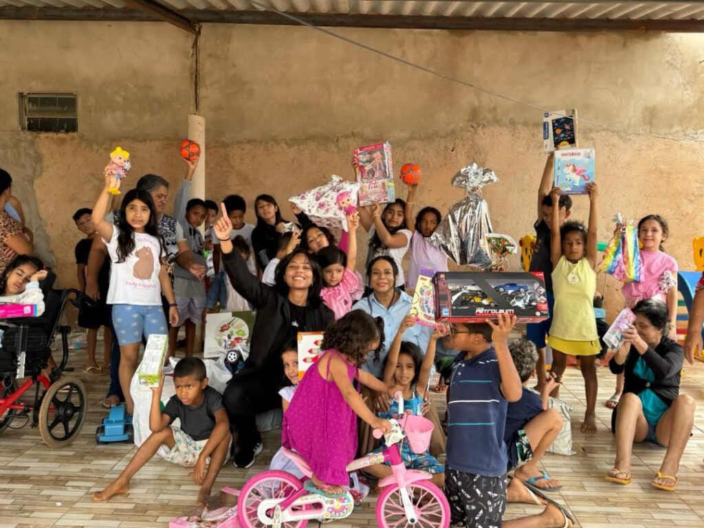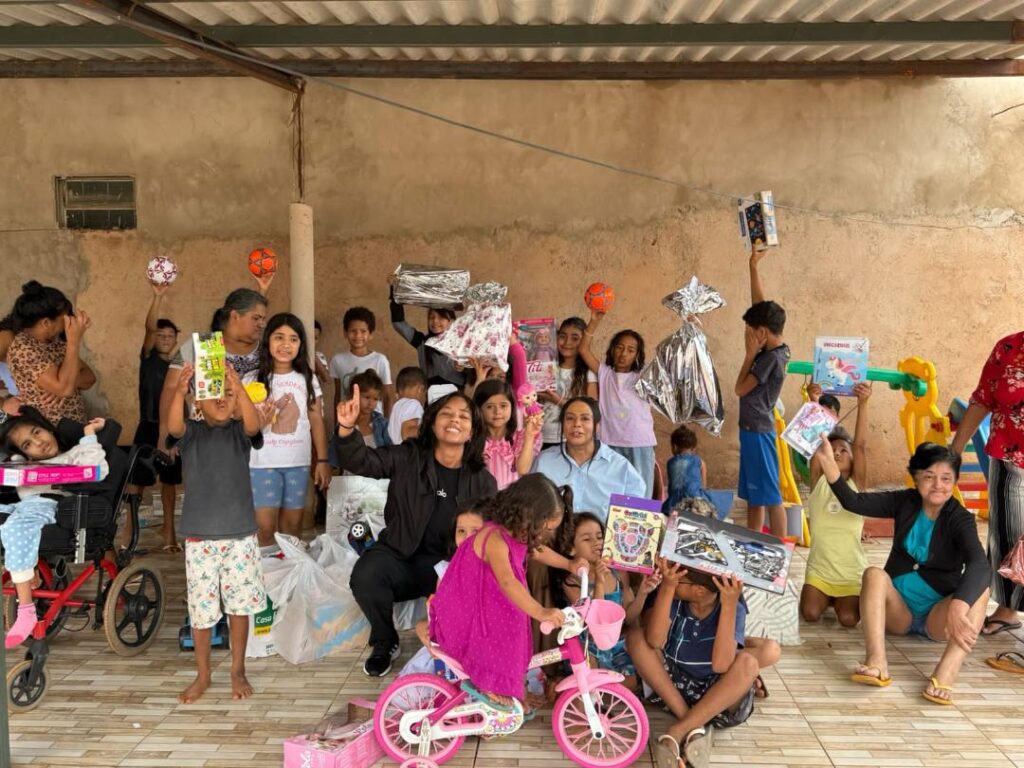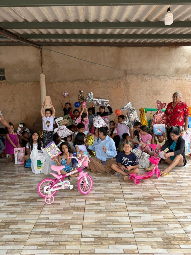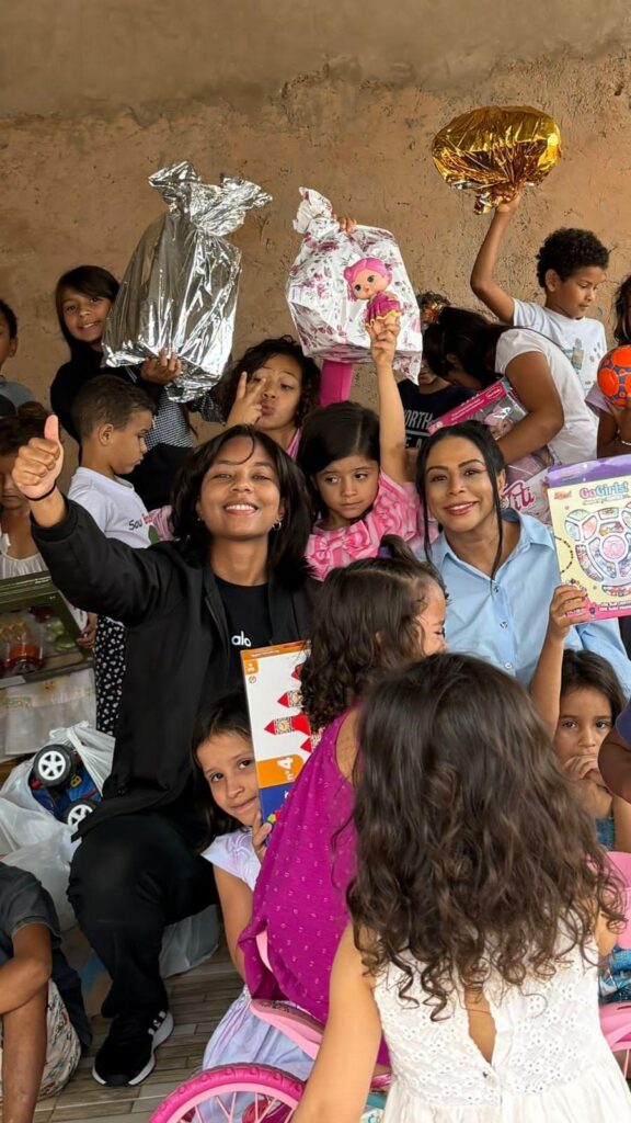 Um dos locais contemplados pela edição de 2025 foi o Centro Comunitário Tia Gigi, localizado na Queda do Descoberto, em Águas Lindas de Goiás, região do Entorno de Brasília. O espaço se transformou em cenário de sorrisos, abraços e emoção ao receber a ação solidária, que beneficiou mais de 80 crianças da comunidade.