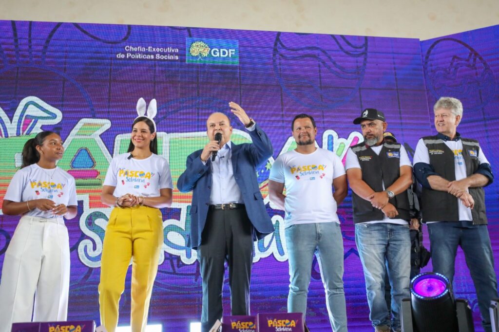 A campanha Páscoa Solidária está de volta. Promovida pela Chefia-Executiva de Políticas Sociais do Governo do Distrito Federal (GDF), a ação resgata os significados do período pascal por meio de doações e atividades recreativas para beneficiar crianças em situação de vulnerabilidade social. A terceira edição foi lançada nesta quinta-feira (10), durante evento no Centro Olímpico e Paralímpico (COP) Parque da Vaquejada, em Ceilândia, com a presença do governador Ibaneis Rocha e da primeira-dama Mayara Noronha Rocha.