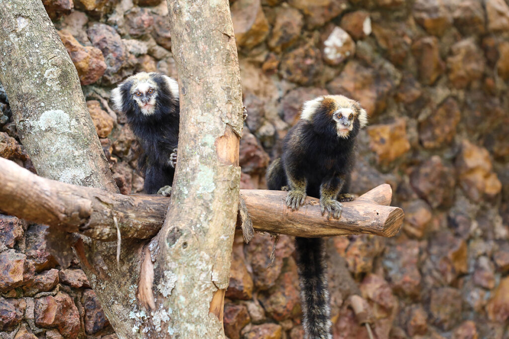 Casal de saguis-da-serra-escuro encanta visitantes no Zoológico de Brasília neste fim de ano