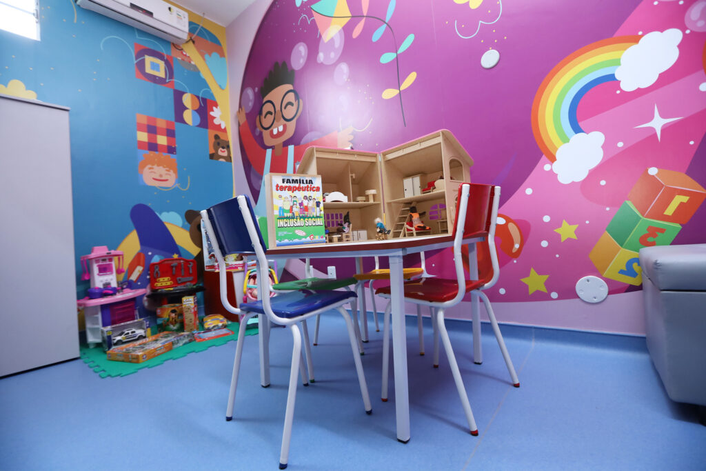 Criada em 2014, a ludoteca ganhou reforma completa neste início de ano: troca de piso, plotagem de paredes, novo mobiliário com armários, mesas e assentos e doação de brinquedos adequados à terapia proposta. Embora o ambiente seja lúdico e mais infantil, o local também está aberto à assistência a jovens e mulheres vítimas de violência.