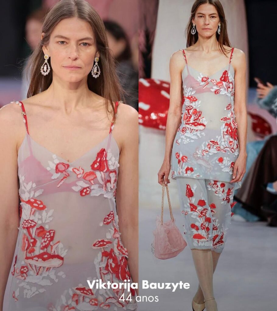 Ao contrário da tradicional obsessão pela juventude no mundo da moda, a maison estendeu seu casting para incluir mulheres de diferentes faixas etárias na passarela — um gesto que dialoga diretamente com a ideia de que a alta-costura deve celebrar todas as formas de beleza e experiências femininas.