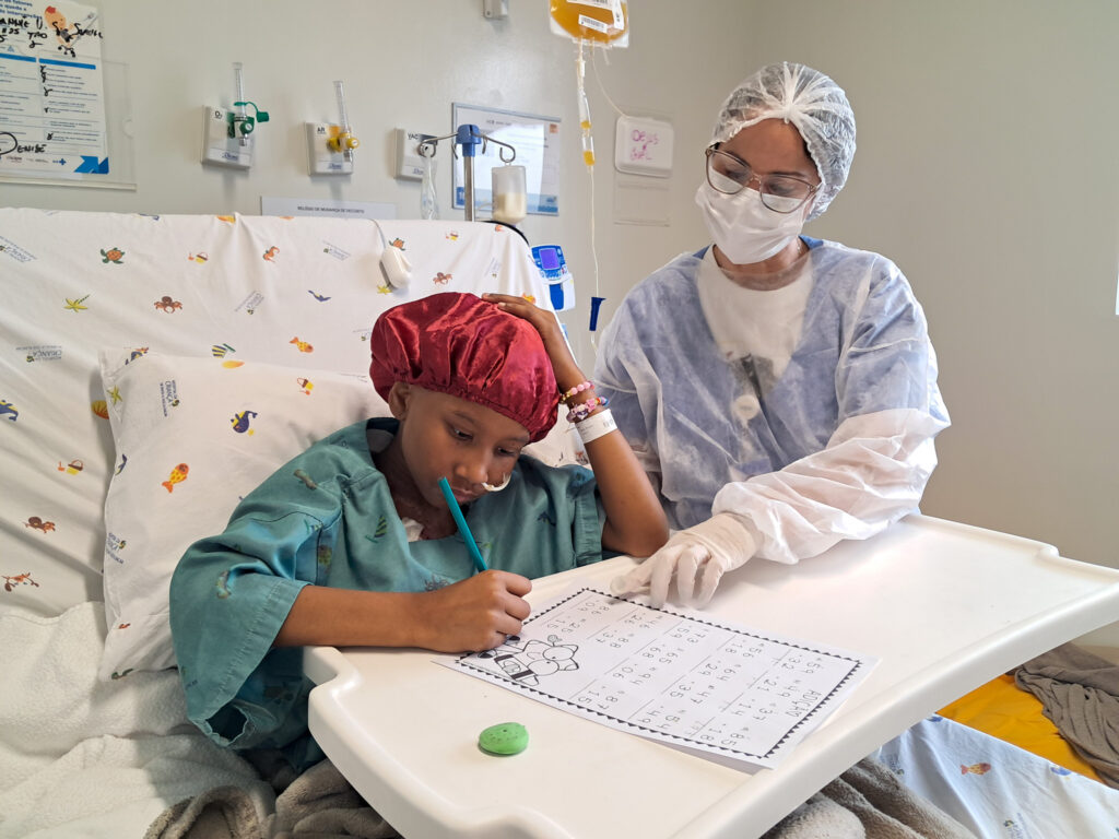 Com esse envio, as professoras garantem que as crianças não percam a continuidade pedagógica. As atividades são impressas e realizadas no leito ou, quando a condição clínica e as precauções de contato permitem, em uma sala separada, permitindo a realização das atividades em pequenos grupos. “Depois, na alta hospitalar do aluno, devolvemos as atividades para a família e encaminhamos o relatório para a escola, dizendo quais foram as habilidades e os conteúdos que a criança aprendeu, o que ela deu conta e o que não deu”, conta a professora.