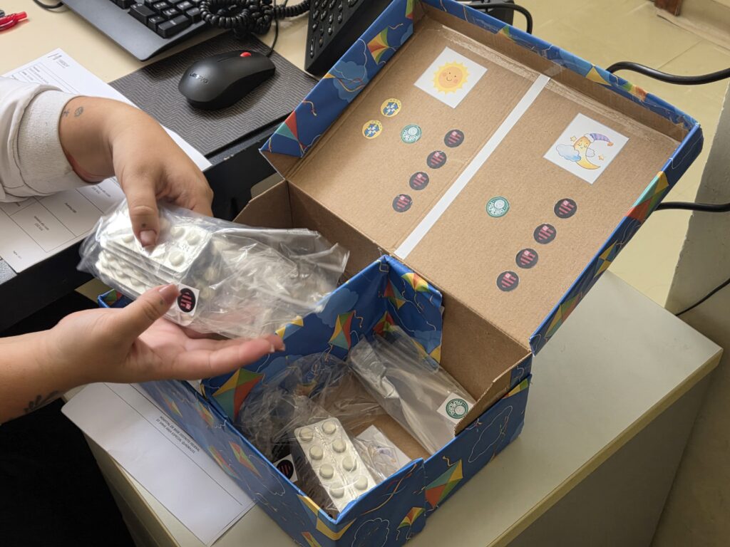 A iniciativa surgiu diante do caso de Rafael (nome fictício), de 25 anos, que vive com esquizofrenia de difícil controle, deficiência intelectual, e que, recentemente, foi diagnosticado com epilepsia. Após seis meses internado, ele apresentou melhora significativa e recebeu alta para continuar o tratamento em casa — etapa em que o uso contínuo e preciso dos remédios é essencial para evitar regressões.