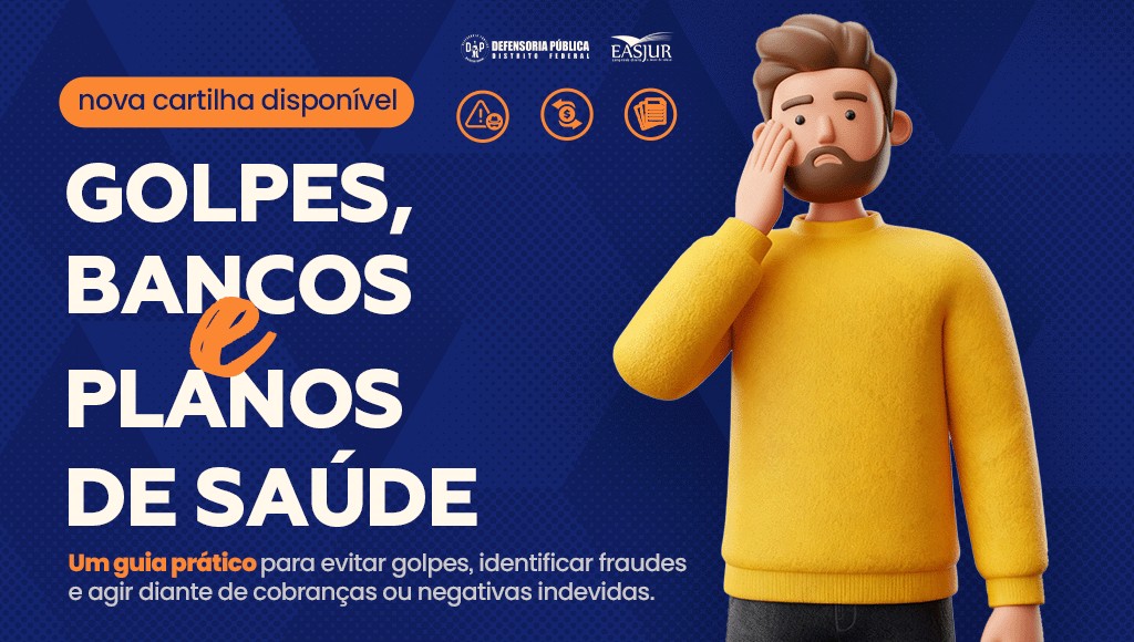 A Defensoria Pública do Distrito Federal (DPDF) lançou, nesta quinta-feira (13), a cartilha Golpes, bancos e planos de saúde. O material visa a orientar a população quanto aos golpes mais comuns e ensinar como agir quando planos de saúde ou instituições financeiras desrespeitam seus direitos.