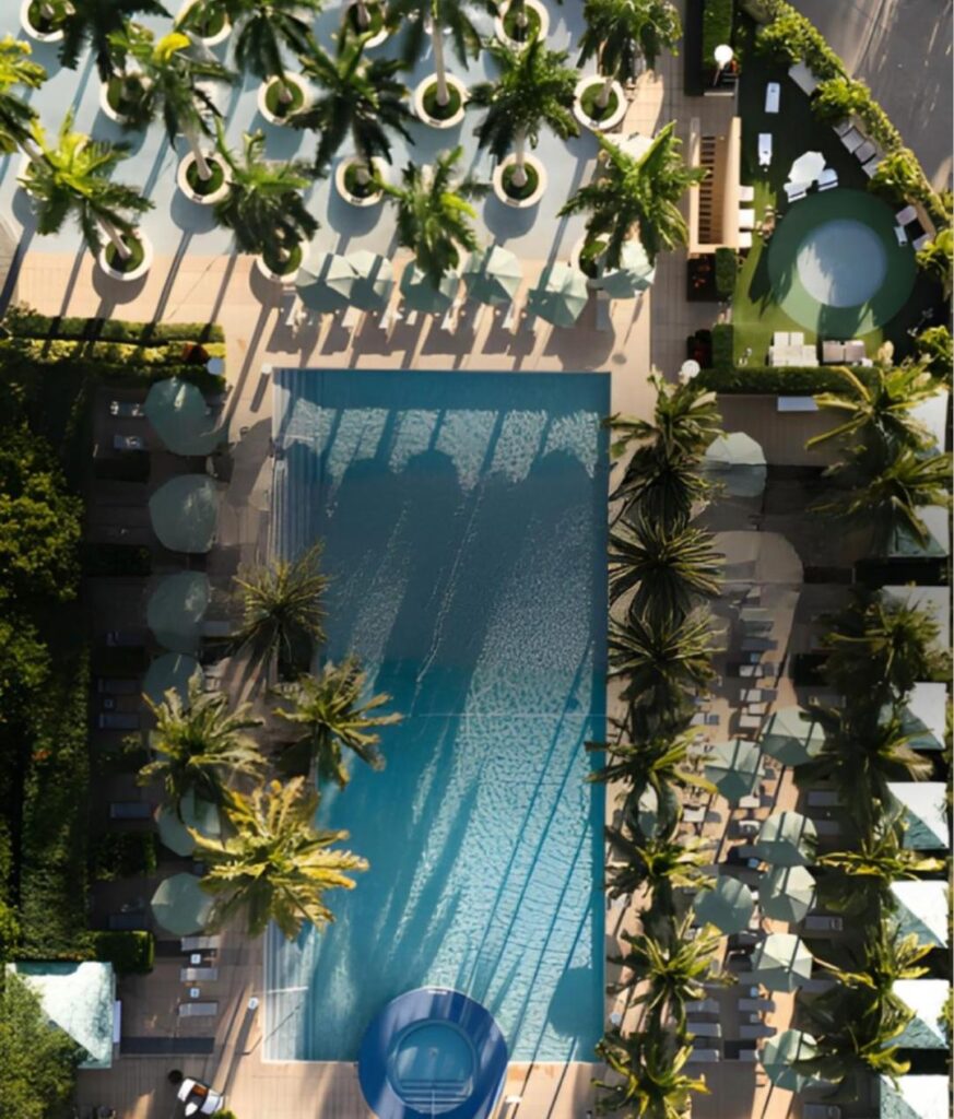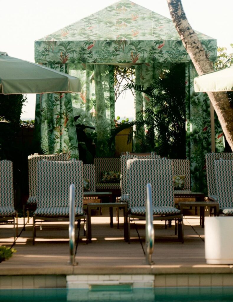 O universo criativo da PatBO ultrapassa a moda e ocupa, nesta temporada, a área da piscina do Four Seasons Miami com um projeto de décor exclusivo. A marca imprime sua identidade em um dos hotéis mais sofisticados do mundo, criando um cenário que celebra a natureza, o frescor do litoral e a estética tropical.
