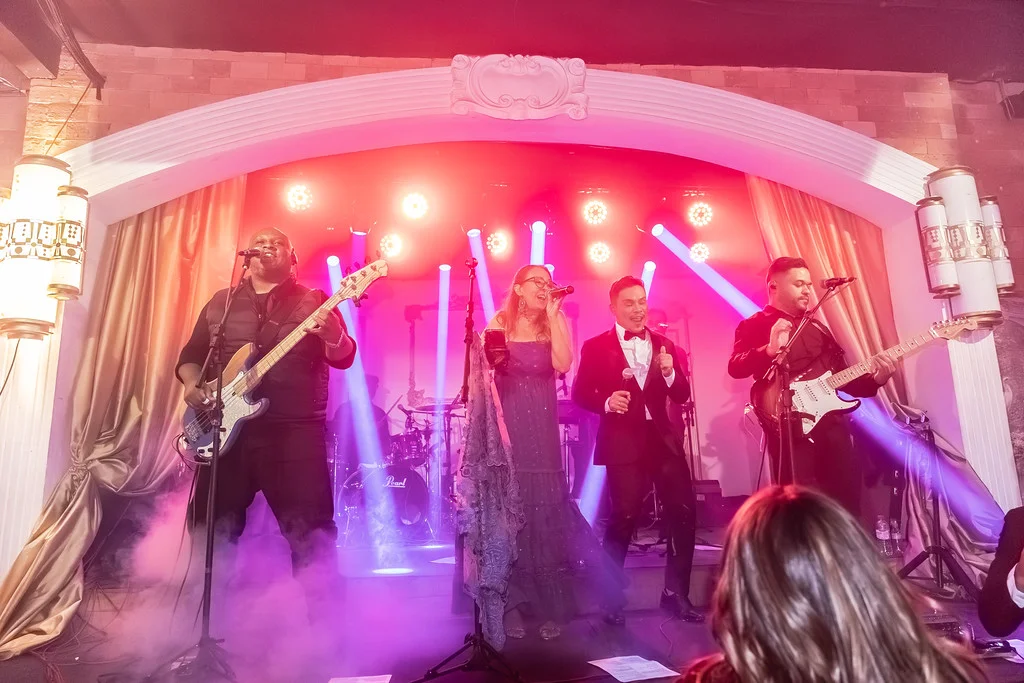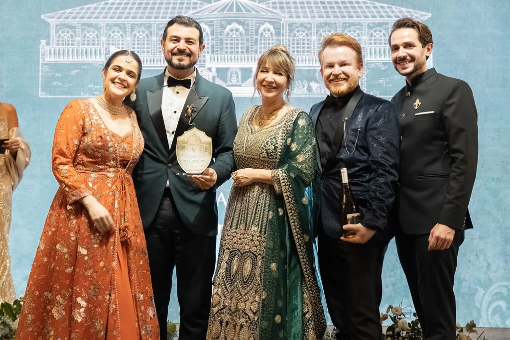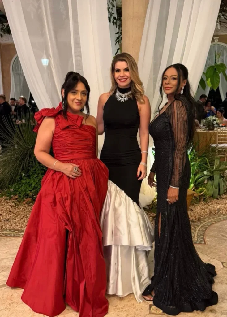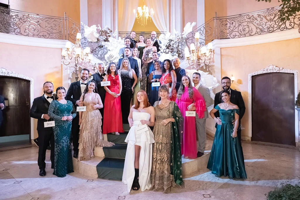 A noite contou com coquetel volante, ilha gastronômica, mesa de sobremesas assinada, música ao vivo e abertura oficial da pista com banda baile. O dress code foi gala — smoking e vestido longo — incentivando brilho e elegância.